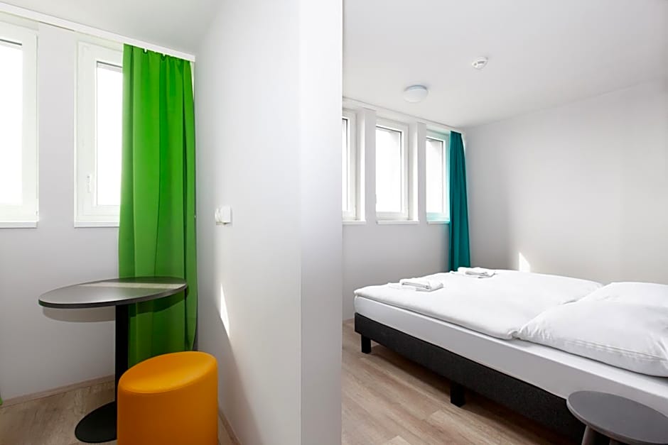 Functionally furnished room with a TV, consisting of 2 interconnected bedrooms and a private bathroom with a shower. Some rooms offer views of the city. For the bunk beds bed linen is provided for self-covering.